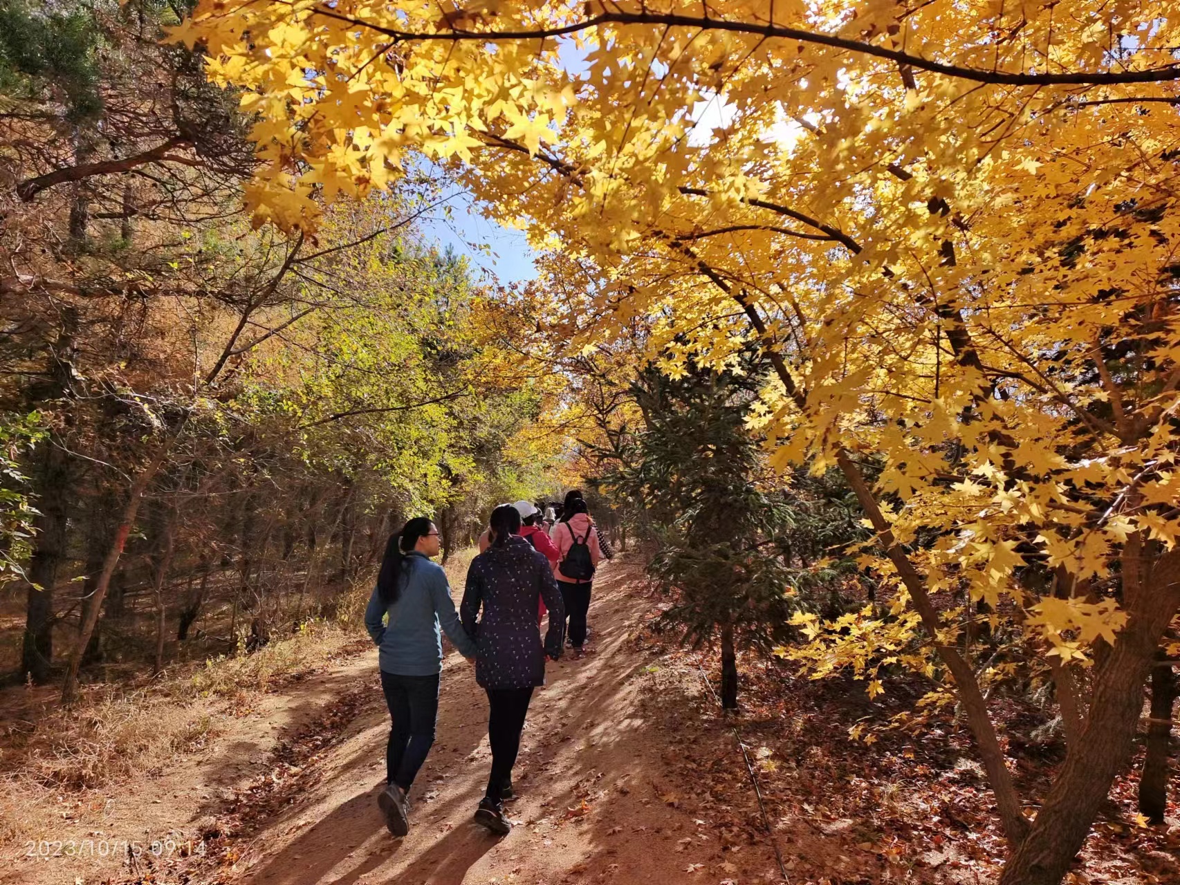 邀请专业徒步向导马长友老师,在徒步路线、徒步技巧以及行程安全方面给予保障,全程近10公里,行程2个多小时。徒步活动过程中,尽管山路崎岖,但老师们精神抖擞、热情高涨,大家边走边饱览秋天的景色,体验自然,是不是被美景吸引,驻足拍照。老师们呼吸着清新的空气,放松着心情,欣赏着风景,交流着情感,享受徒步带来的多重感受。