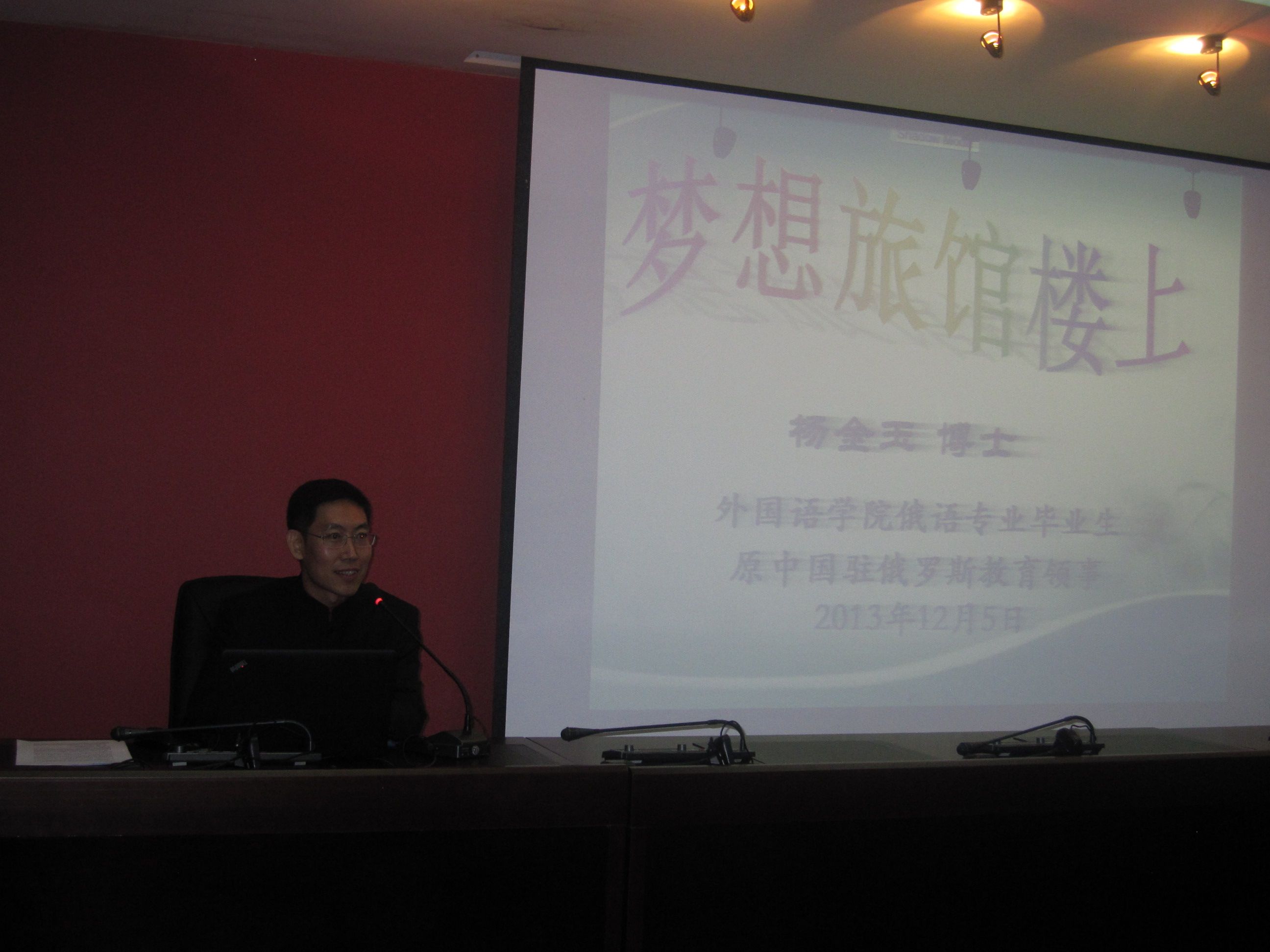1998届俄语专业毕业生、原中国驻俄罗斯教育领事杨金玉博士在外语楼501会议室为同学们带来《梦想旅馆楼上》。澳门金沙娱乐城app
