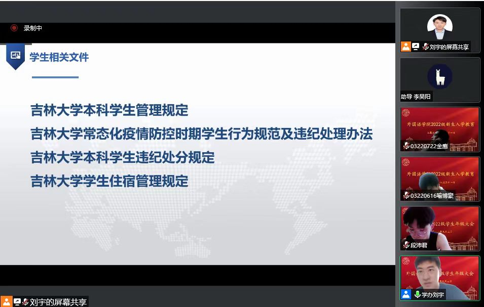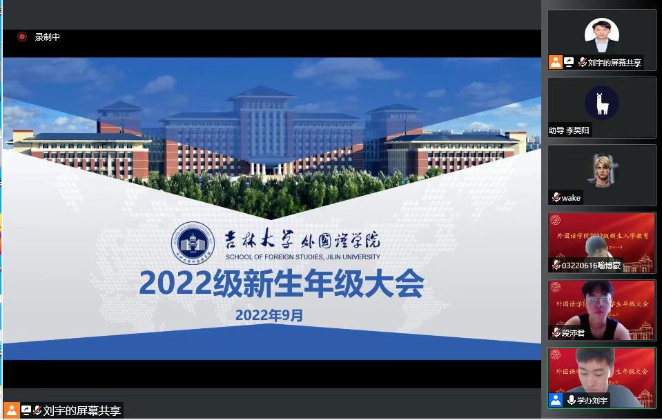 2022级新生辅导员刘宇主持,2022级全体学生参会。
