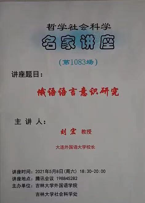邀请,大连外国语大学校长刘宏教授于2021年5月8日18:30在腾讯会议平台为澳门金沙娱乐城app