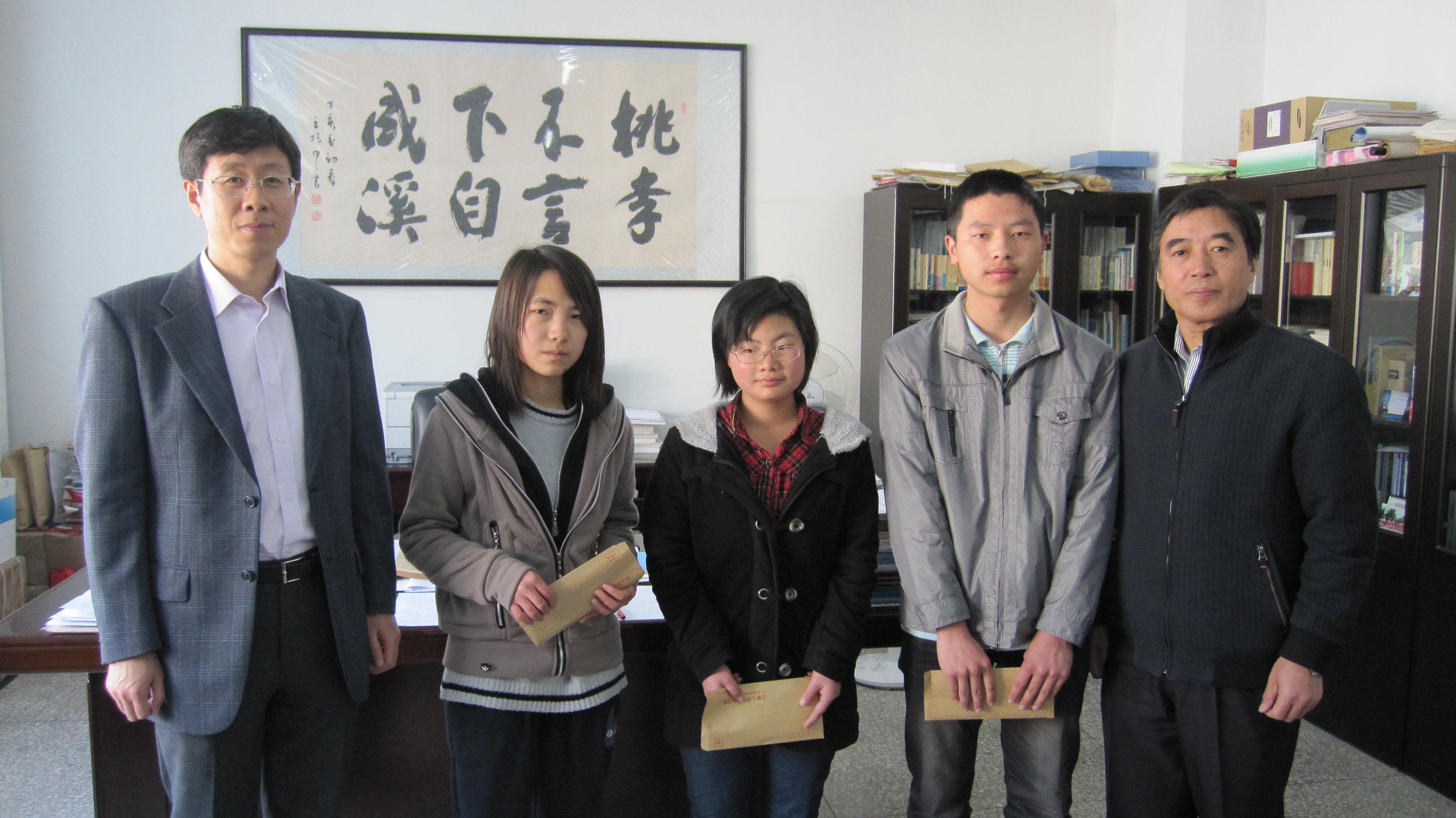 举行了2010年度霞山会奖学金颁奖仪式,院长宿久高教授、副院长周异夫教授、副书记兼副院长赵程华老师、日语系主任胡建军老师和学生工作办公室副主任葛宗梅老师出席了仪式。宿久高院长为获奖的3名学生颁发了奖学金,亲切询问他们的学习、生活状况,鼓励他们克服困难,努力学习,做一名对社会有贡献的人。