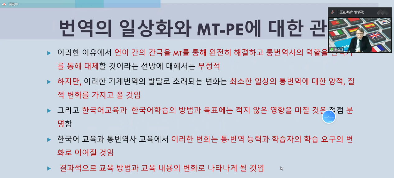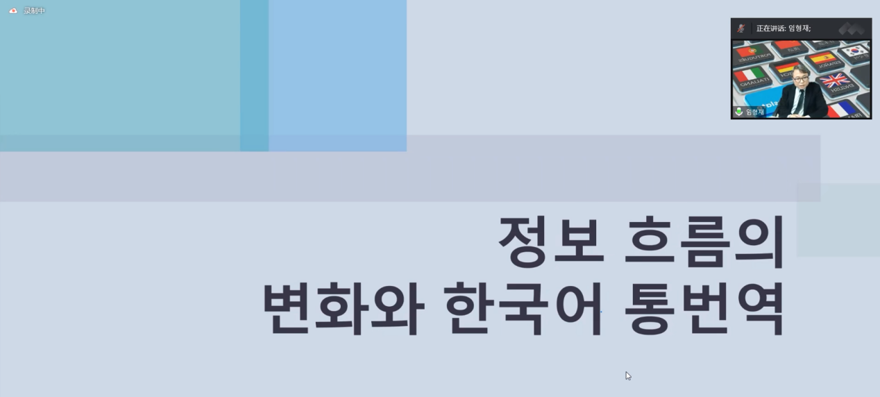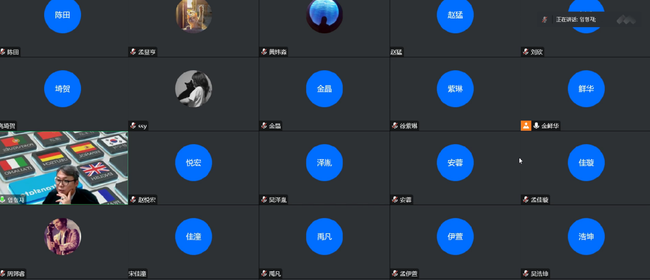 对外韩语翻译专业教授、国际韩国语言文化学会会长林亨栽在云端通过腾讯会议平台为澳门金沙娱乐城app