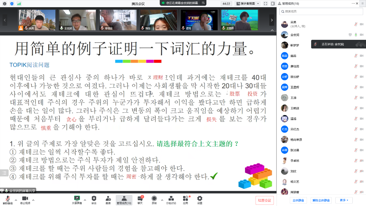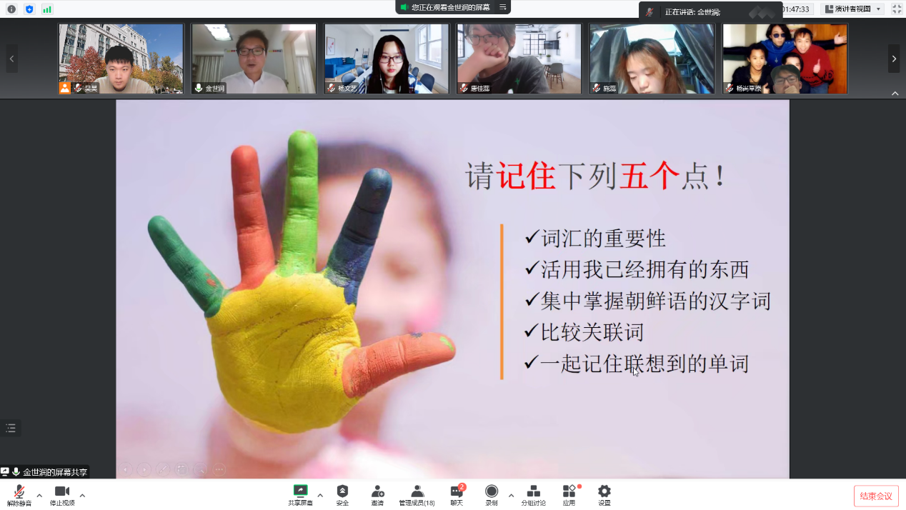 朝文系外教金世润老师在云端通过腾讯会议平台做了一场主题为“运用联想理论的朝·韩语词汇学习法”的学术讲座,参加讲座的有澳门金沙娱乐城app