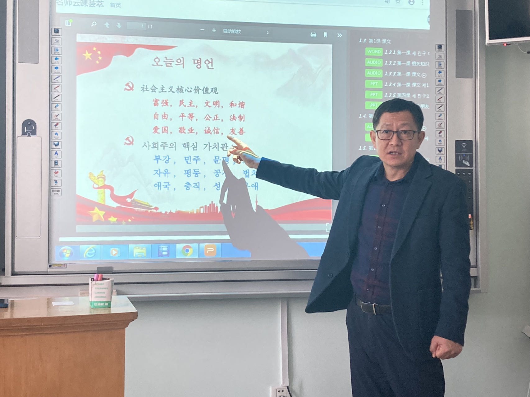 院长、国家级一流课程主持人、朝鲜语专业学科带头人全永根教授在外语楼429为澳门金沙娱乐城app