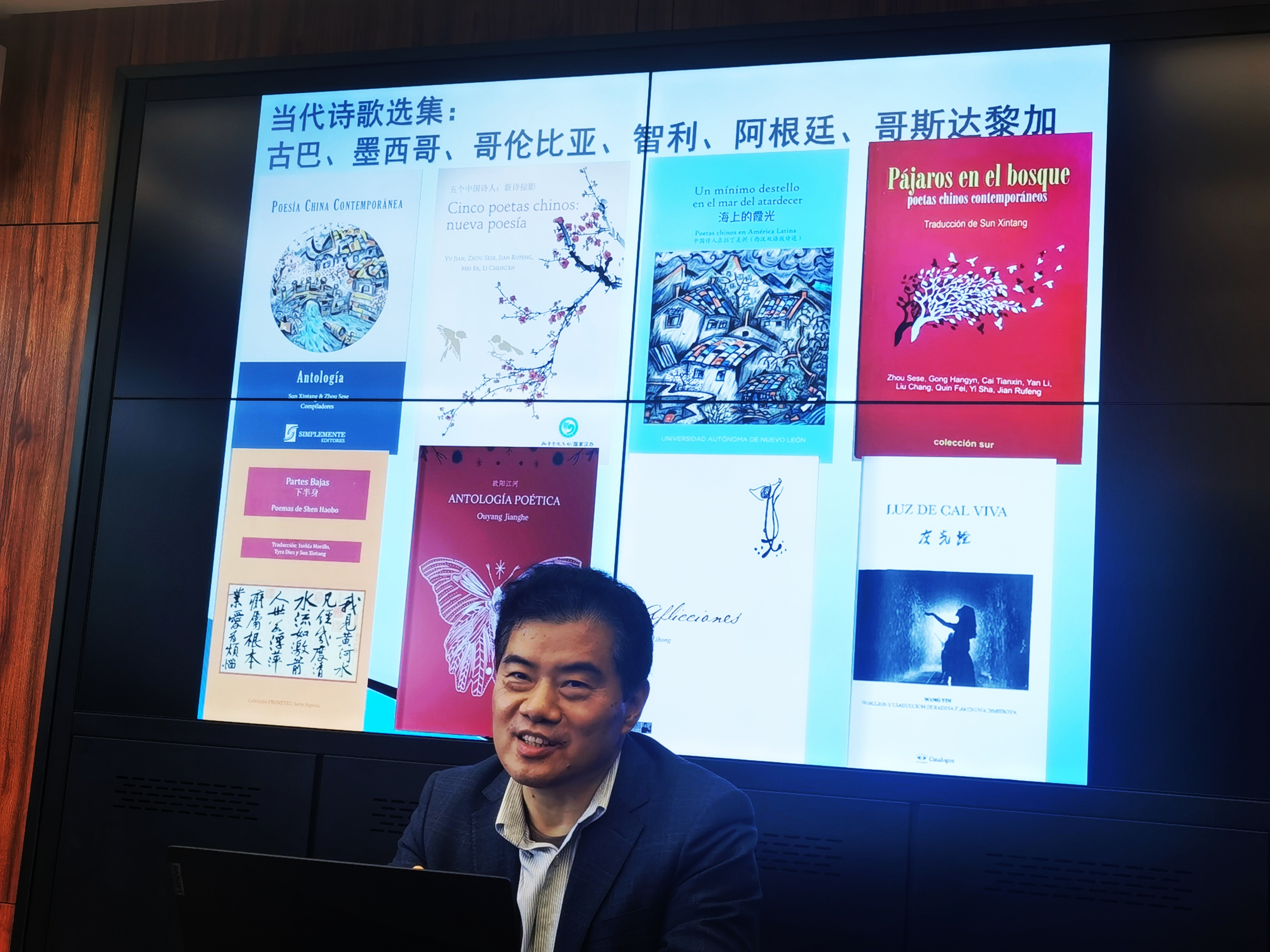 拉丁美洲中心执行主任。他从自己工作实践的角度分享了中拉文化交流的一些实践案例,回顾了拉美著名作家作品在中国的翻译和出版情况,着重介绍了莫言、迟子建、阿来、麦家和徐则臣等中国著名作家作品当前在拉美的翻译和传播情况。在讲座的最后,孙新堂老师展望了中拉文化交流的前景,分析了中拉文化交流能够为同学们未来发展所提供的机遇。