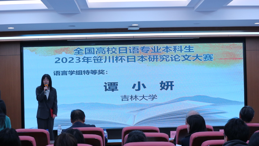 日文系学子凭借创新的研究视点和出色的现场发挥,在各校众多选手中脱颖而出共夺得四个奖项。2021级谭小妍同学独占鳌头摘得语言学组特等奖;2021级龚世颖、孙钰鑫两位同学荣获文化组二等奖;2021级丁伶俐、邓欣怡、邢惠淋三位同学获得文化组三等奖;2020级袁鹰扬同学获得语言学组三等奖。他们取得以上优异成绩展现了日文系对学生运用日语解决具体问题的能力、创新能力与独立研究能力的培养成果。未来日文系将继续重视学生综合实践能力的培养,为国家培育更多优秀的复合型日语人才。