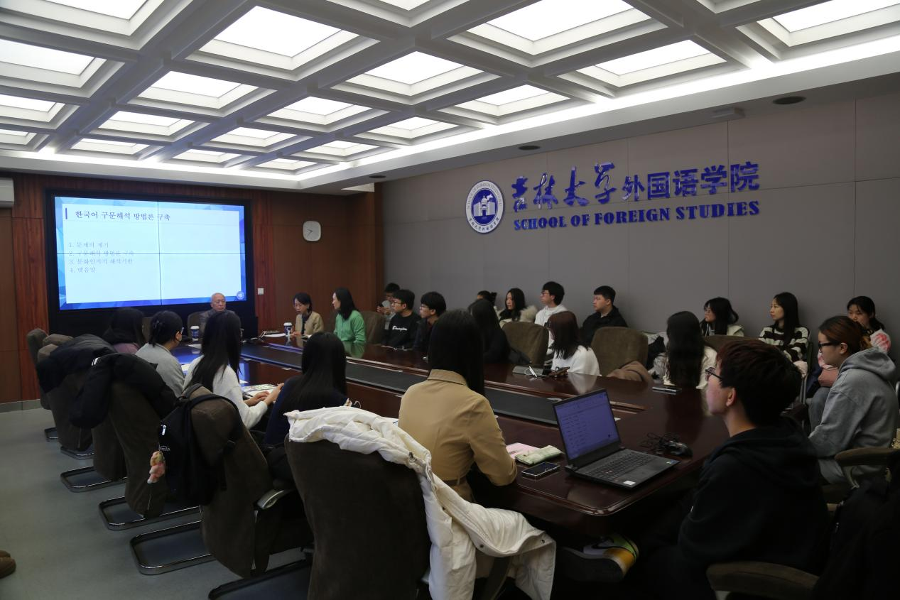 副院长金晶主持,朝文系教师及本科生、硕、博士研究生参加了讲座。