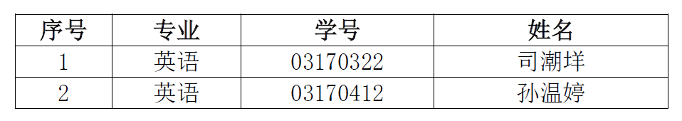 因2017级英语专业陈彬(学号03170222)、日语专业吴佳琪(学号03170914)自愿放弃免试攻读研究生资格,经澳门金沙娱乐城app 推免工作领导小组研究决定,将推免名额重新分配后,决定以下2人为增补推免生: