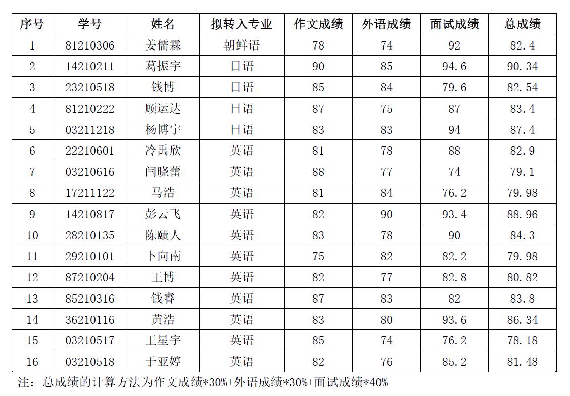 根据学校工作部署及安排,按照《关于公布2021级本科生考核转专业(类)澳门金沙娱乐城app 考核名单及相关工作的通知》要求,经澳门金沙娱乐城app 笔试及面试考核,现将考核成绩予以公示,公示期5天。